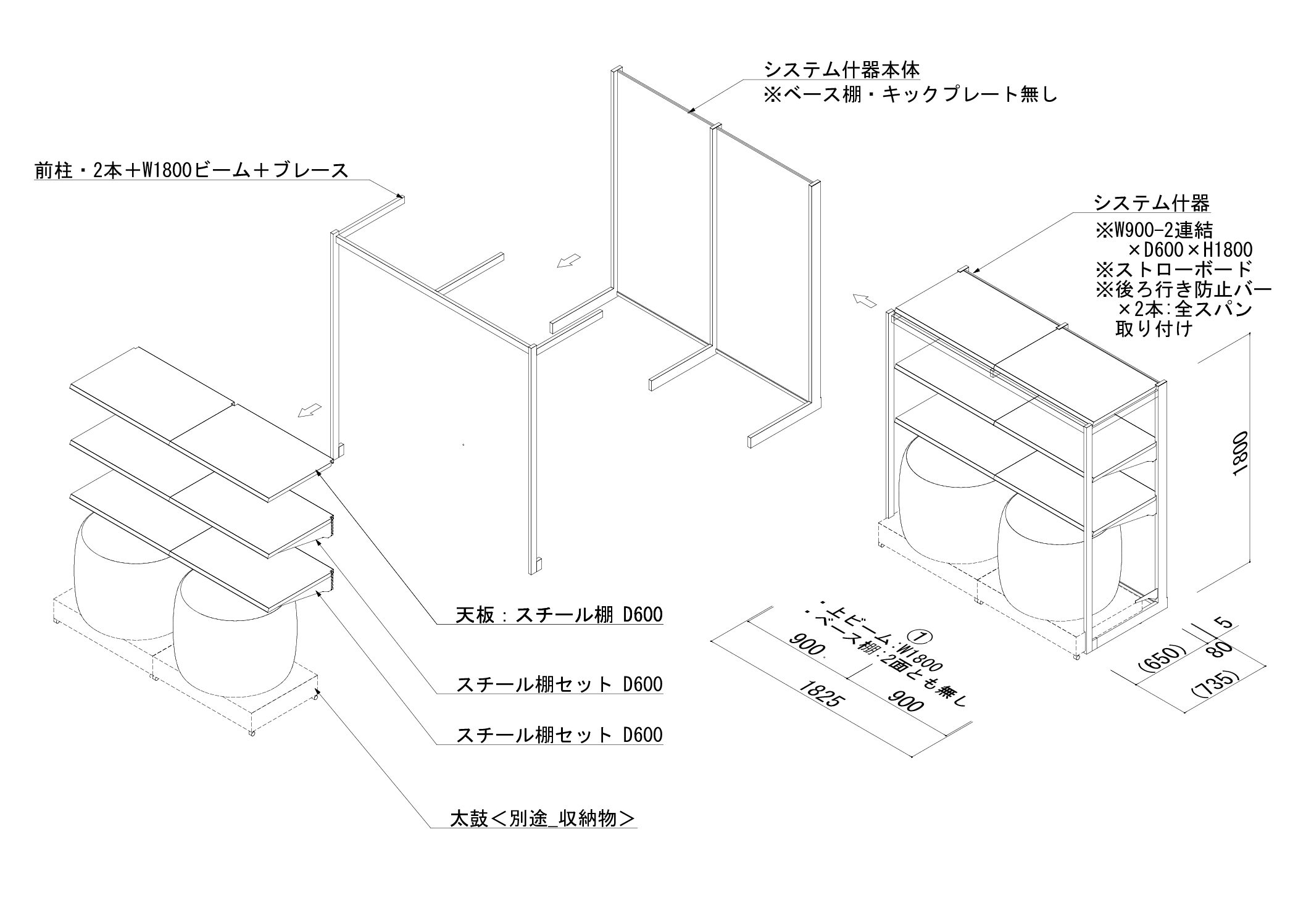 陳列什器を用いた収納改善什器の可能性は幅広く、今までの既製品のラックや収納棚とは収納力・強度が全く違う収納什器を提案できます。学校の部室や習い事の活動スペースの収納でお悩みの方は是非、ご相談下さい。