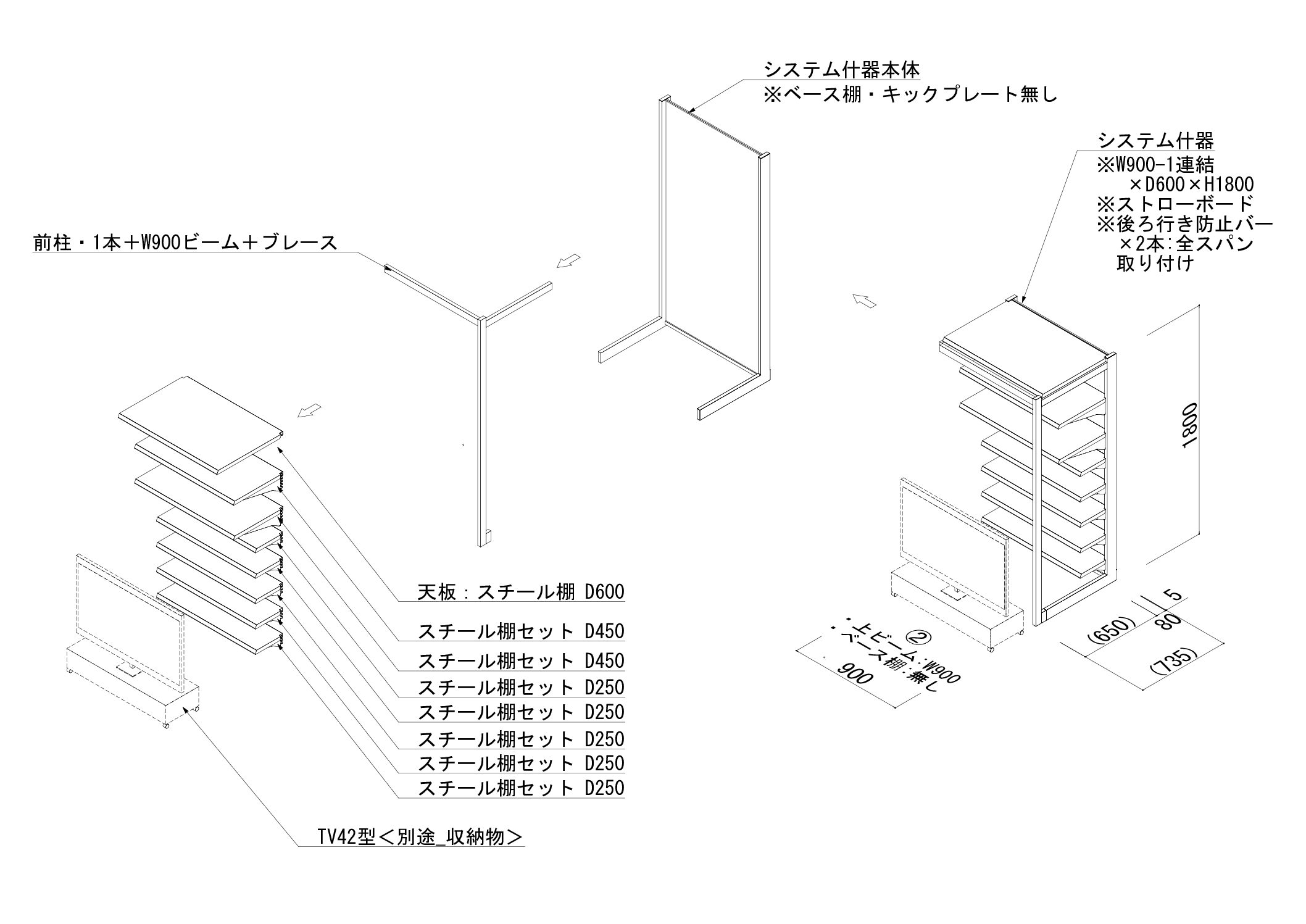 ■ スチール棚セット W900 × D250 販売価格 ¥(税込・送料組立別途)