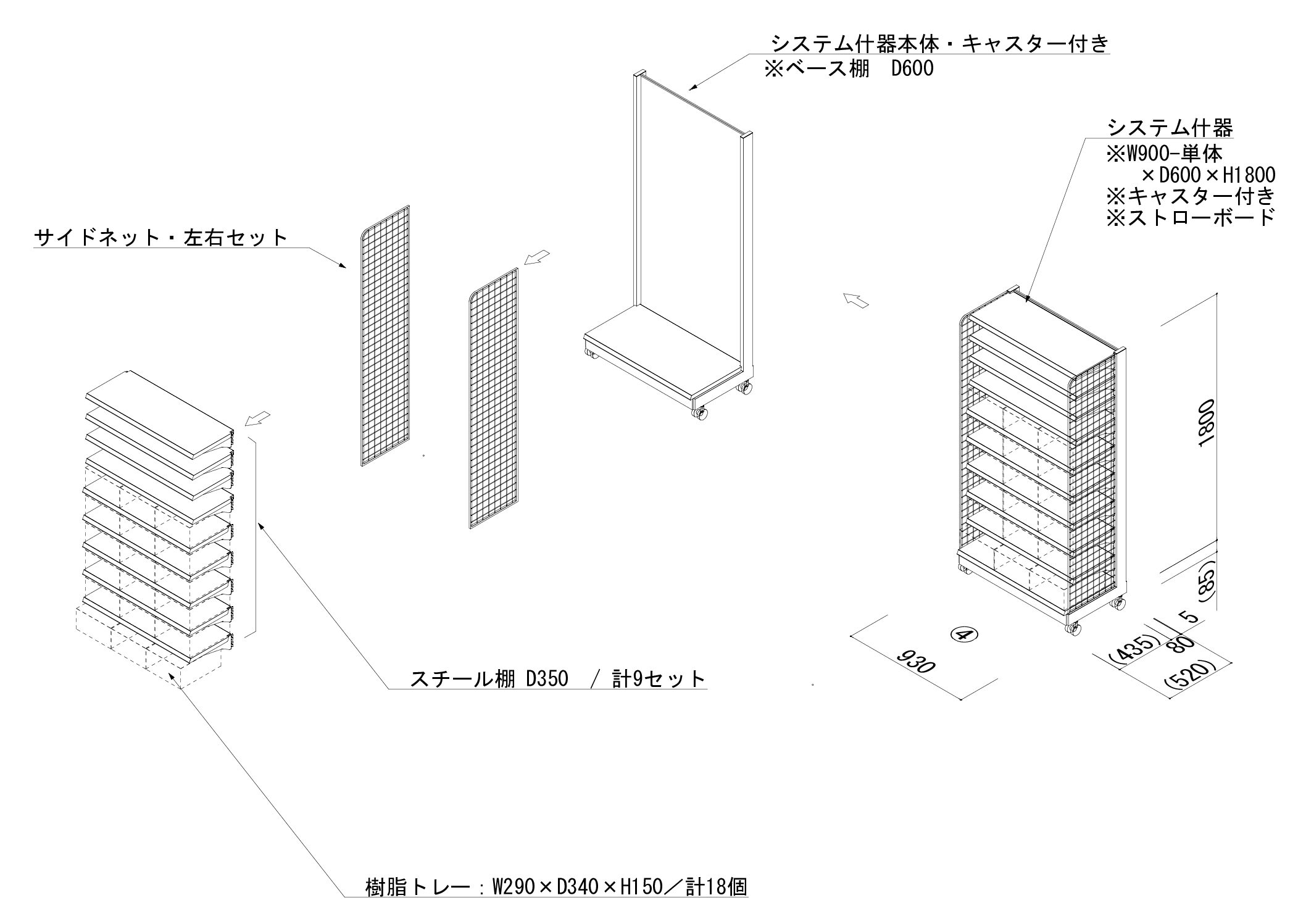 ■ スチール棚セット W900 × D350 販売価格 ¥(税込・送料組立別途)